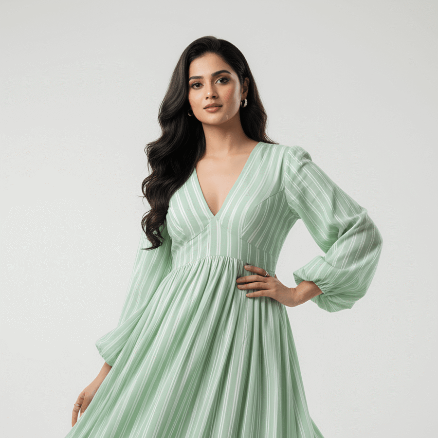 Step into elegance with our Jasmin Mist Dress, a knee-length beauty designed with puff sleeves and a flattering V-neckline. Crafted in pure rayon tulle, it flows gracefully with every move while keeping you comfortable all day. The back zipper and adjustable fit ensure effortless wear. Comes with two side pockets (because style deserves practicality!) and a free matching hair bow worth ₹150 – the perfect finishing touch.